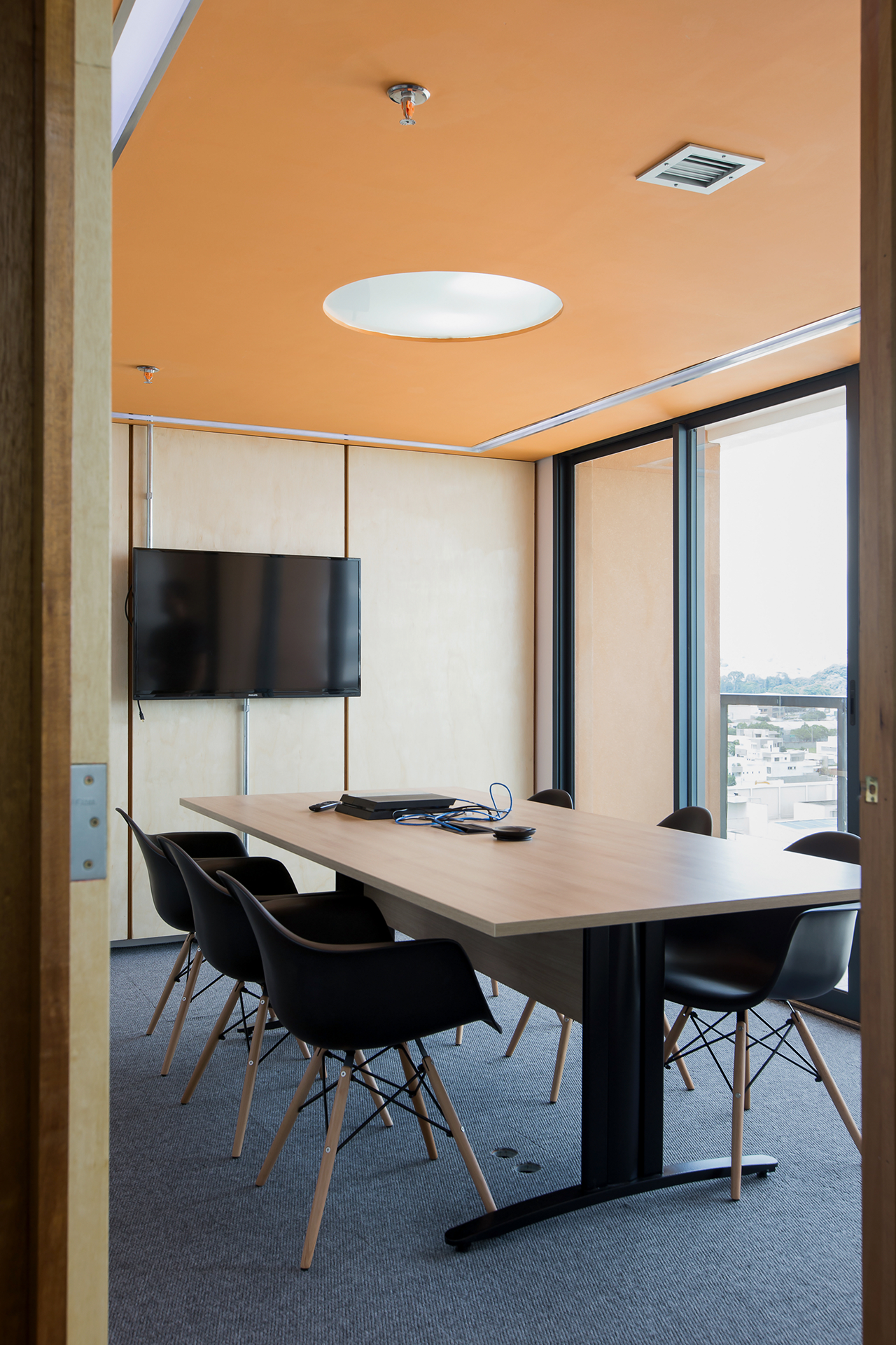 Projeto de escritório para 30 postos de trabalho, com previsão de expansão. Definição das áreas de estar, salas de reunião, áreas operacionais e de apoio, e todas as infraestruturas necessárias. No meio do conjunto foi implantado um forro modular e acústico, balizado por uma estante definidora do layout, elemento de caracterização e diferenciação dos ambientes do conjunto.